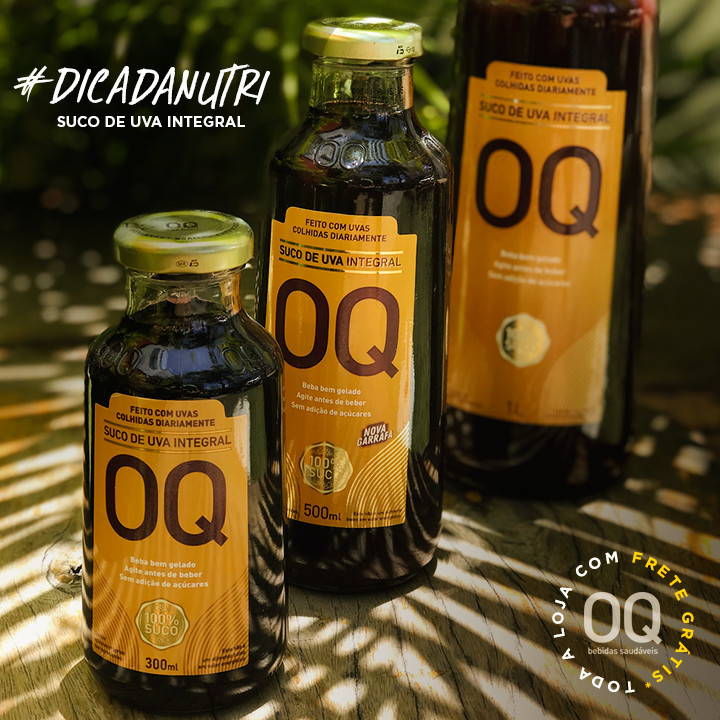 Por isso, recomendamos um copo de Suco de Uva Integral OQ diariamente para estar em dia com a saúde.